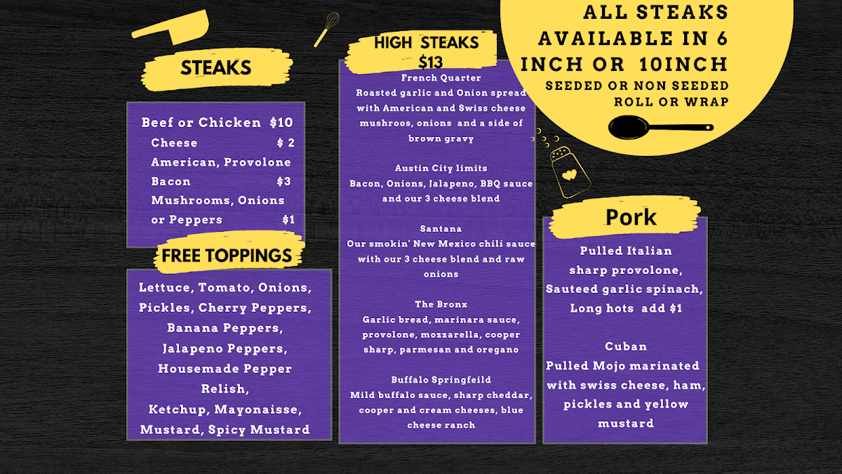 Welcome to High Steaks, a vibrant culinary gem located at 242 E Butler Ave in Ambler, PA. This hotspot exceeds expectations with its eclectic menu and lively atmosphere, adorned with captivating music memorabilia. The quality of ingredients shines through in every dish, from the classic cheesesteaks to delightful vegetarian options like the Veggie Philly Cheese “Steak” featuring baby Bella mushrooms.